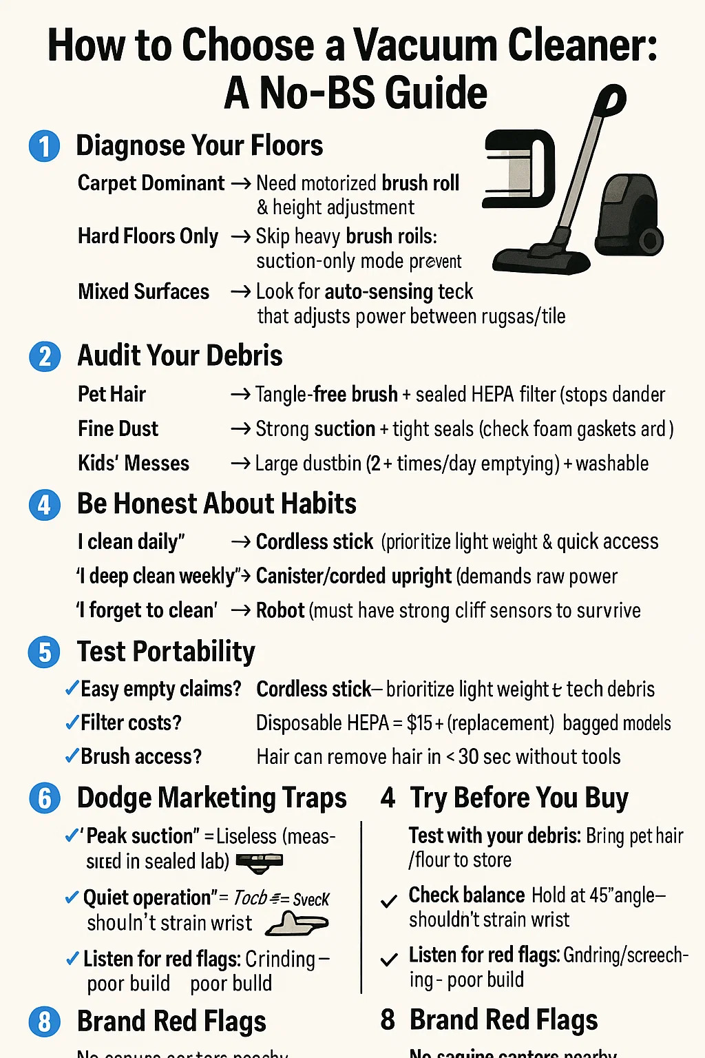 "Ik maak dagelijks schoon" → draadloze stick (prioriteit geven aan lichtgewicht en snelle toegang).